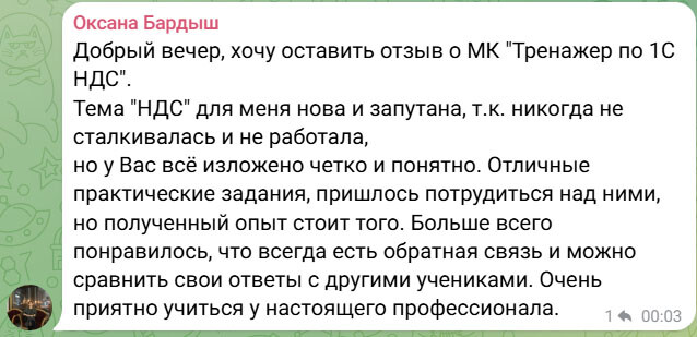 Доступ на 2 недели в закрытый чат телеграм, где даются практические задания по занесению данных в 1С Бухгалтерия 8 ред. 3.0.